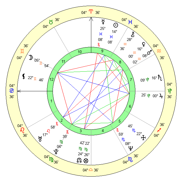 | Pluto | 4 Virgo 39 | 2 Aquarius 59 | 3 Virgo 35 |