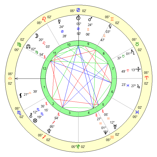 | Mars | 24 Gemini 6 | 5 Virgo 52 | 12 Cancer 17 |