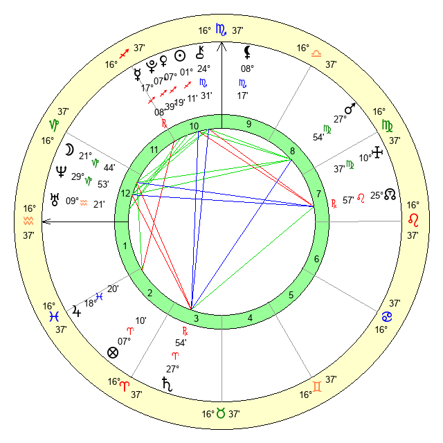 | Mars | 27 Virgo 54 | 5 Leo 3 | 12 Libra 7 |