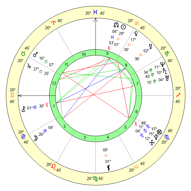 | Venus | 17 Aquarius 30 | 8 Aries 1 | 2 Aries 25 |