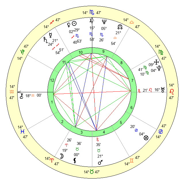 | Sun | 29 Scorpio 53 | 0 Sagittarius 39 | 8 Aquarius 2 |