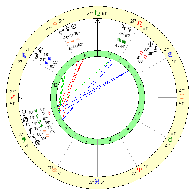 | Moon | 21 Scorpio 8 | 7 Gemini 2 | 11 Aquarius 16 |