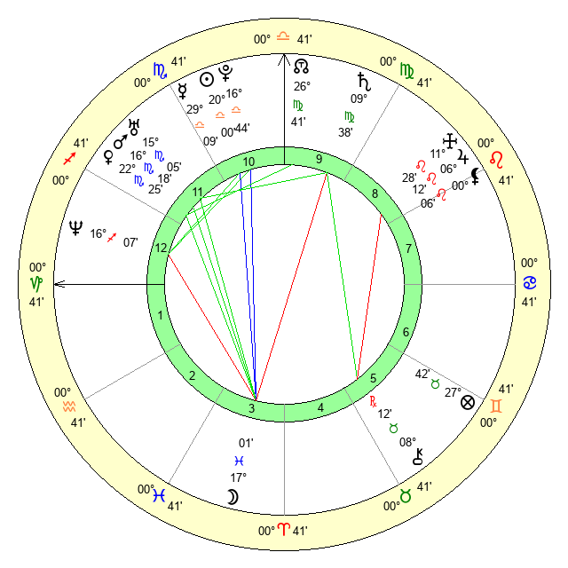 | Saturn | 9 Virgo 59 | 26 Pisces 44 | 13 Virgo 44 |
