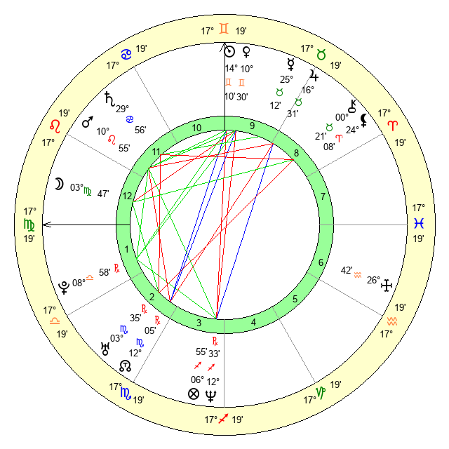 | Moon | 3 Virgo 48 | 1 Libra 44 | 20 Gemini 6 |