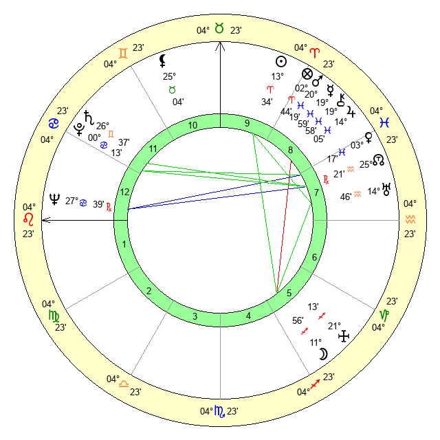 | Mercury | 19 Pisces 59 | 27 Pisces 15 | 9 Cancer 54 |