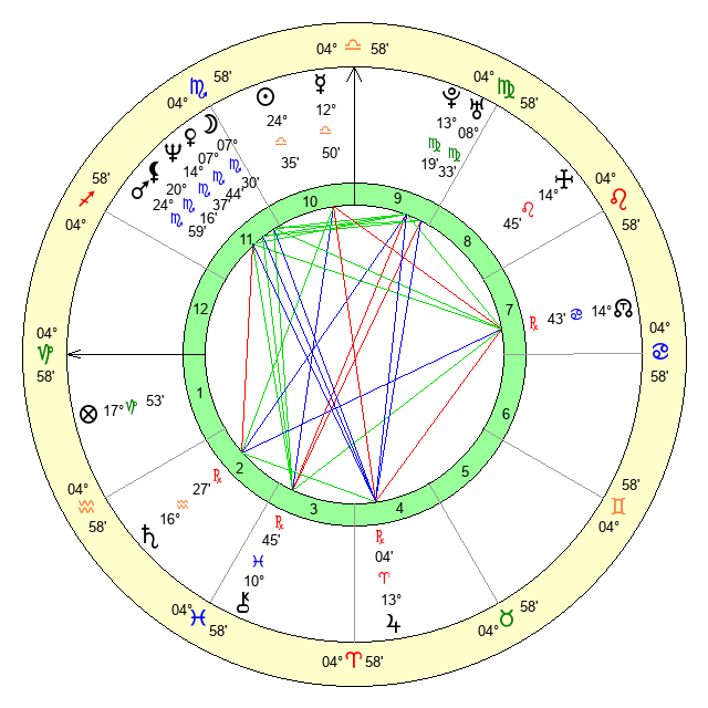 | Sun | 24 Libra 36 | 25 Libra 34 | 27 Sagittarius 4 |