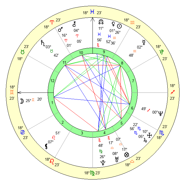 | Moon | 25 Gemini 21 | 2 Libra 31 | 29 Gemini 46 |