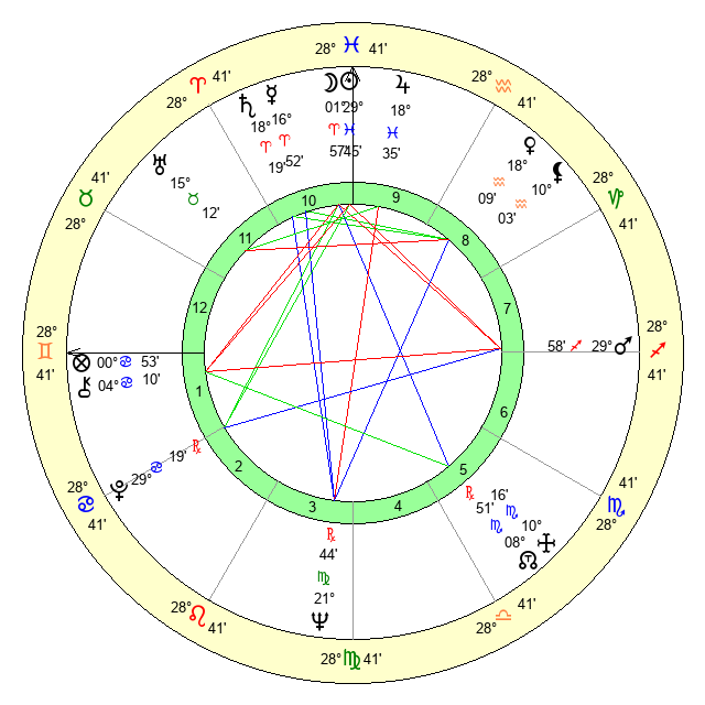 | Sun | 29 Pisces 45 | 0 Aries 54 | 23 Gemini 16 |