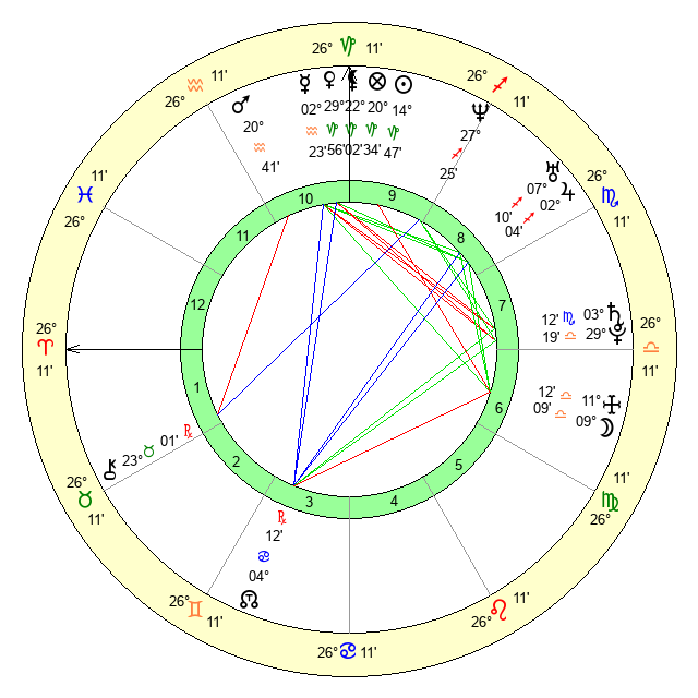 | Pluto | 29 Libra 18 | 2 Aquarius 51 | 29 Libra 26 |