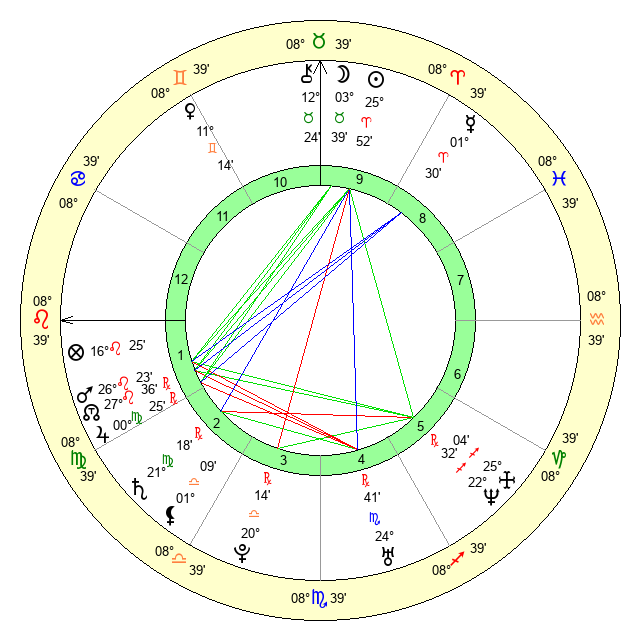 | Moon | 3 Taurus 44 | 25 Scorpio 10 | 19 Sagittarius 8 |