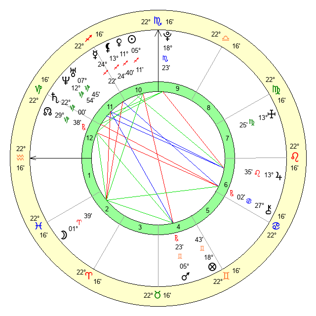 | Moon | 1 Aries 41 | 28 Aquarius 44 | 23 Cancer 48 |