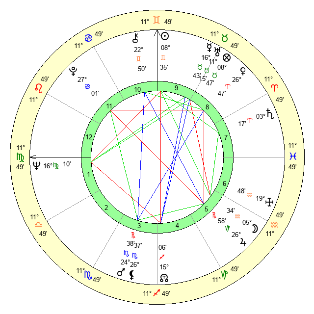 | Sun | 8 Gemini 36 | 9 Gemini 18 | 2 Virgo 46 |