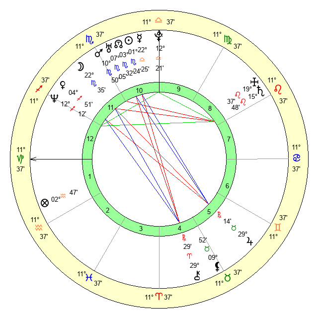 | Moon | 22 Scorpio 26 | 6 Sagittarius 19 | 29 Leo 26 |