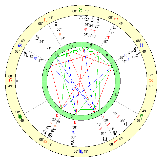 | Sun | 26 Aries 5 | 26 Aries 57 | 14 Gemini 24 |