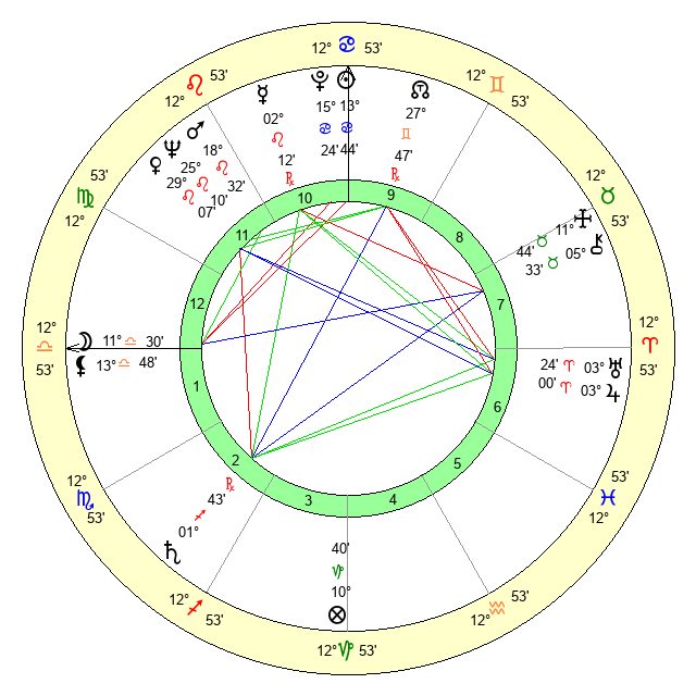 | Mercury | 2 Leo 12 | 10 Leo 44 | 12 Scorpio 23 |