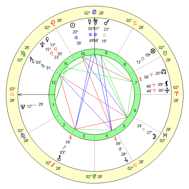 Venus | 13 Leo 59 | 9 Gemini 48 | 14 Scorpio 58 |