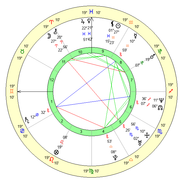 | Jupiter | 22 Pisces 44 | 11 Gemini 31 | 4 Aries 43 |