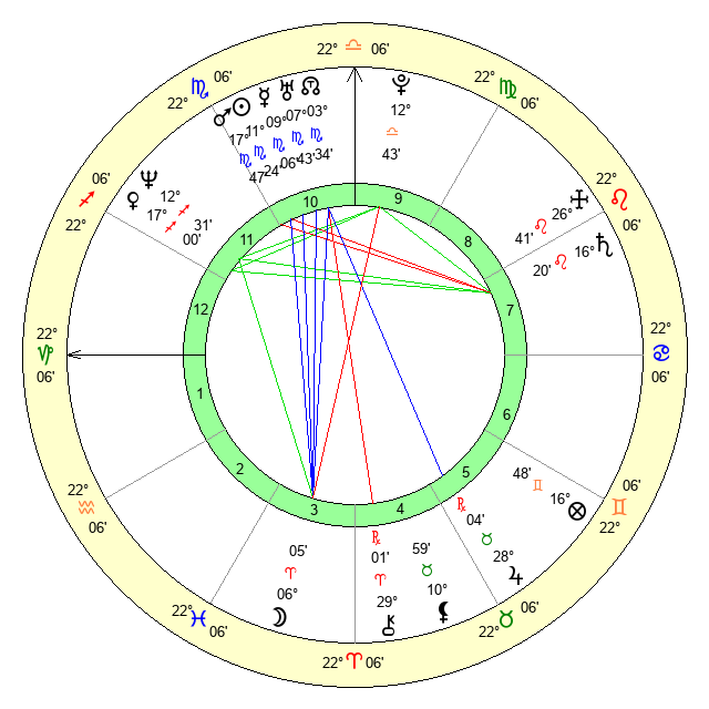 | Uranus | 7 Scorpio 47 | 0 Gemini 11 | 10 Scorpio 33 |