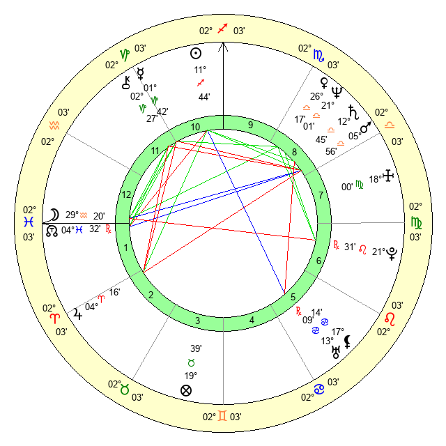 | Saturn | 13 Libra 15 | 25 Pisces 6 | 15 Libra 4 |