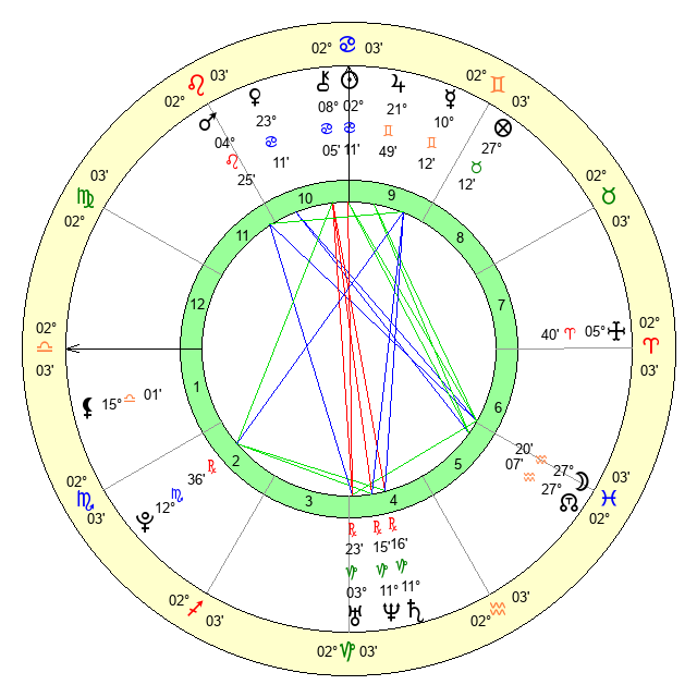 | Mercury | 10 Gemini 13 | 25 Cancer 45 | 18 Leo 40 |