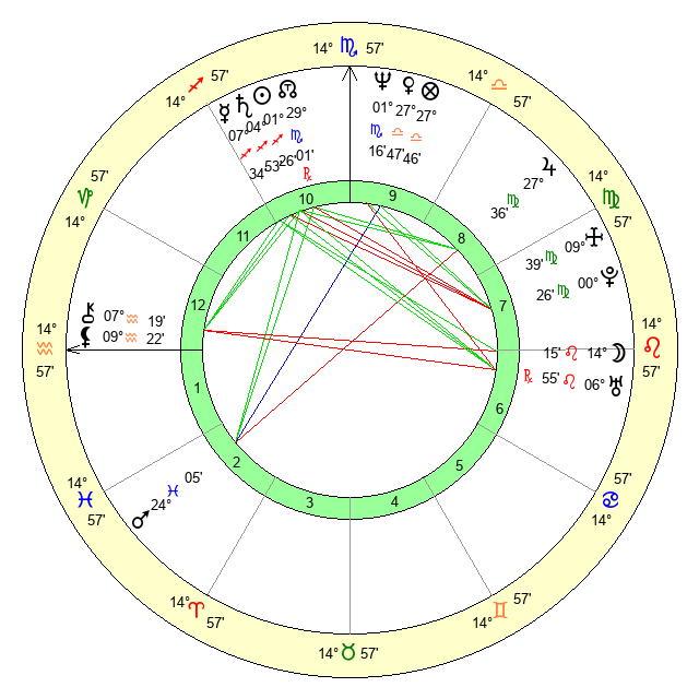 | Moon | 14 Leo 3 | 9 Virgo 38 | 9 Aquarius 0 |