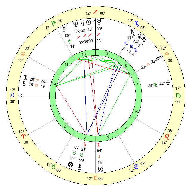 | Saturn | 12 Scorpio 13 | 25 Pisces 12 | 15 Scorpio 44 |