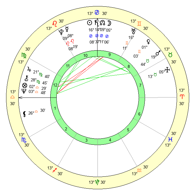 | Sun | 16 Cancer 8 | 16 Cancer 47 | 3 Libra 14 |