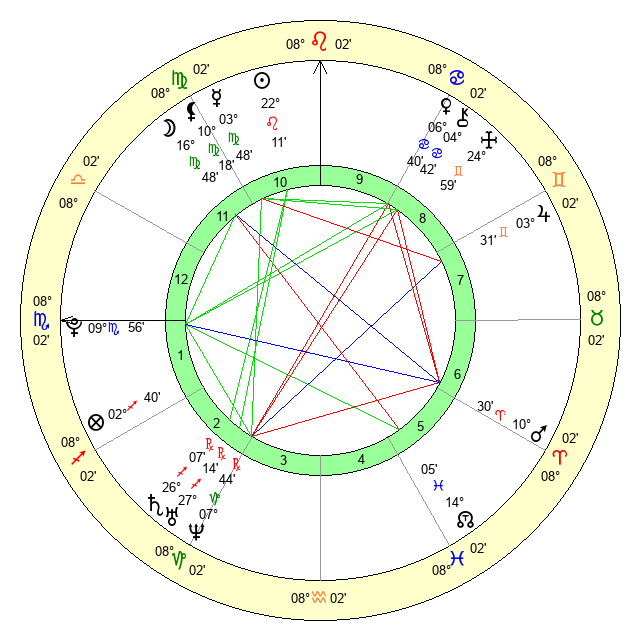 Sun | 22 Leo 11 | 22 Leo 14 | 28 Virgo 1 |