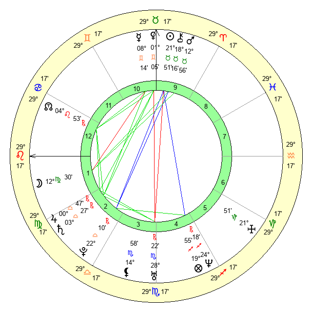 | Mars | 12 Taurus 57 | 11 Leo 10 | 14 Gemini 27 |