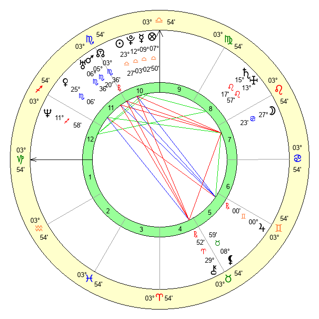 | Neptune | 11 Sagittarius 58 | 0 Aries 7 | 13 Sagittarius 39 |
