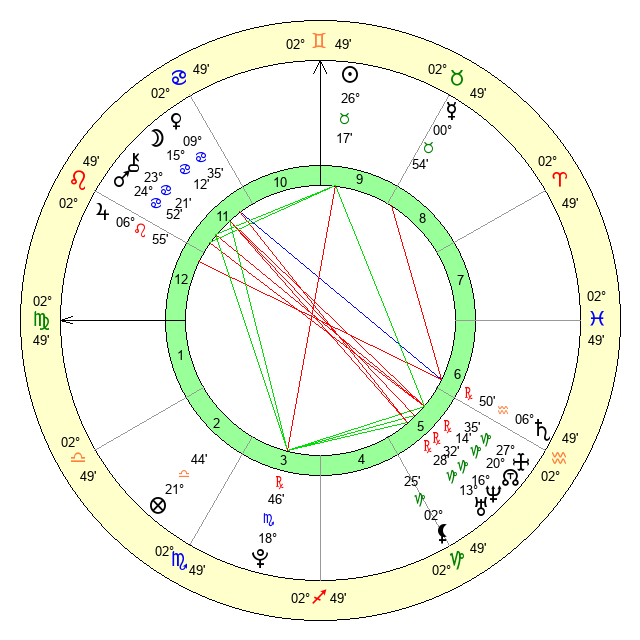 | Pluto | 18 Scorpio 46 | 3 Aquarius 46 | 17 Scorpio 56 |