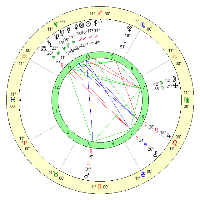 | Moon | 24 Virgo 40 | 21 Leo 57 | 28 Sagittarius 0 |