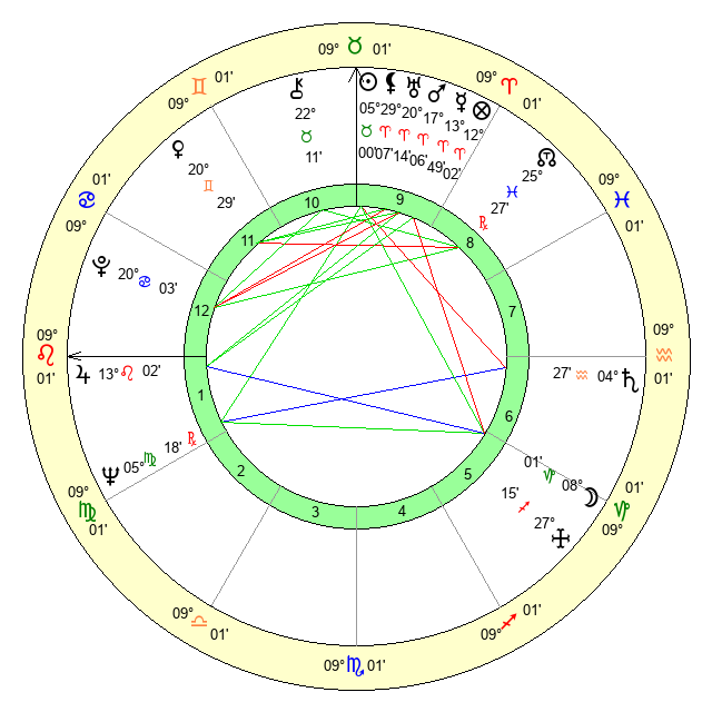 | Neptune | 5 Virgo 18 | 0 Aries 55 | 6 Virgo 29 |