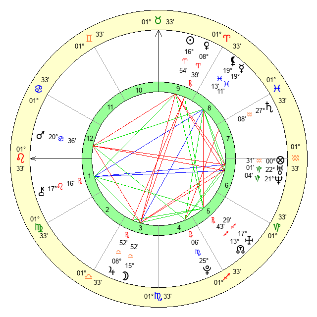 | Pluto | 25 Scorpio 5 | 3 Aquarius 38 | 24 Scorpio 18 |
