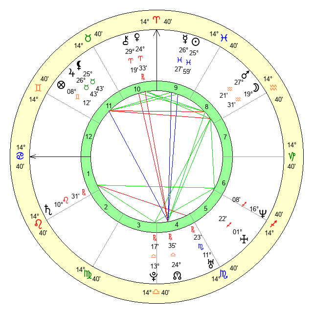 | Mars | 27 Aquarius 21 | 19 Cancer 24 | 4 Aries 40 |