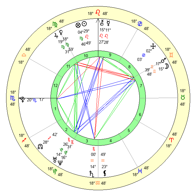| Mars | 17 Gemini 39 | 9 Libra 56 | 6 Cancer 50 |