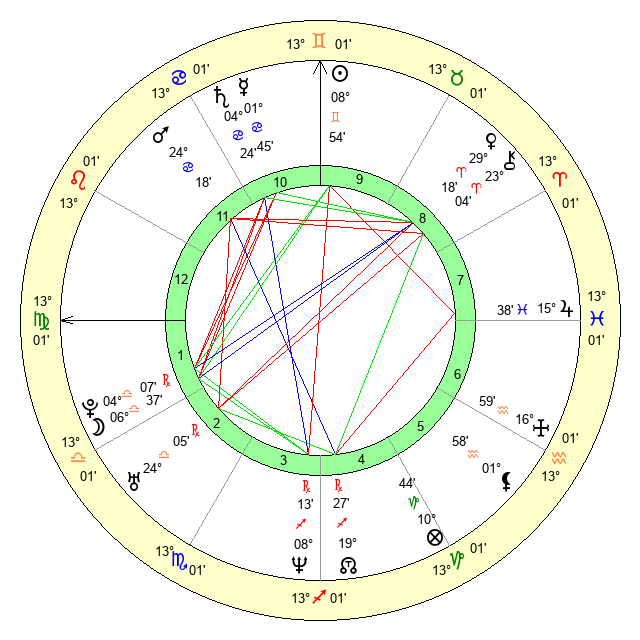 | Jupiter | 15 Pisces 29 | 27 Gemini 43 | 17 Pisces 24 |
