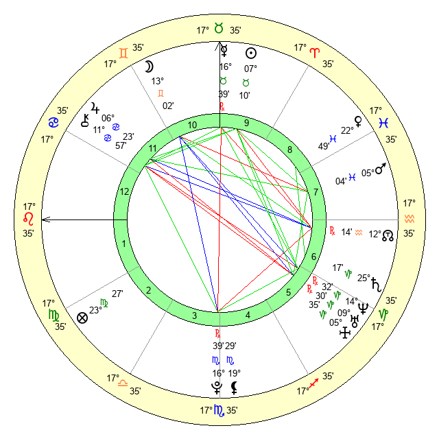 | Moon | 13 Gemini 0 | 6 Taurus 15 | 26 Virgo 44 |