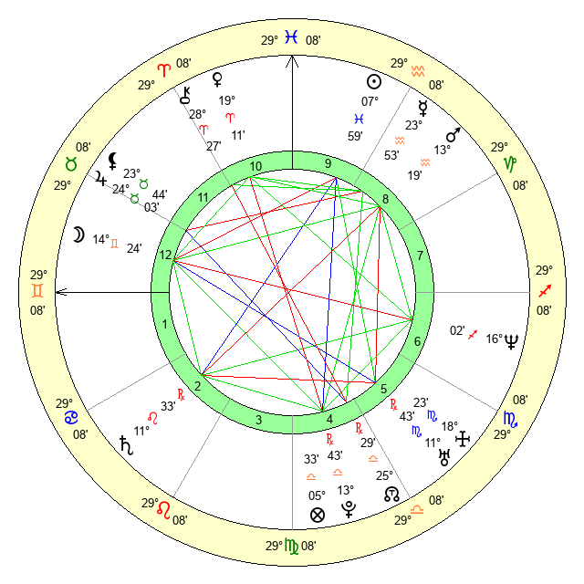 | Moon | 14 Gemini 16 | 20 Aquarius 31 | 24 Pisces 45 |
