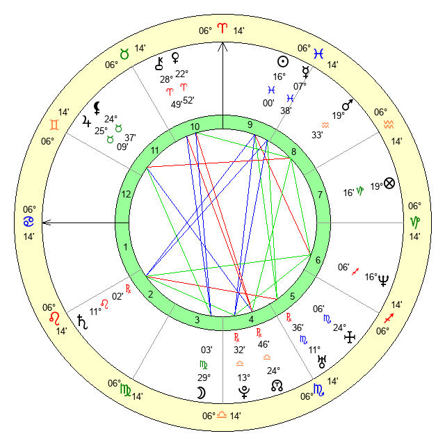 | Moon | 28 Virgo 59 | 16 Gemini 40 | 0 Cancer 40 |