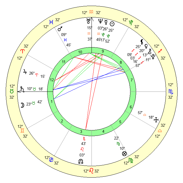 | Neptune | 3 Aquarius 45 | 27 Pisces 34 | 4 Aquarius 41 |