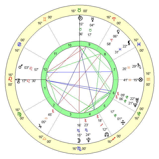 | Moon | 15 Scorpio 17 | 3 Virgo 51 | 18 Capricorn 22 |