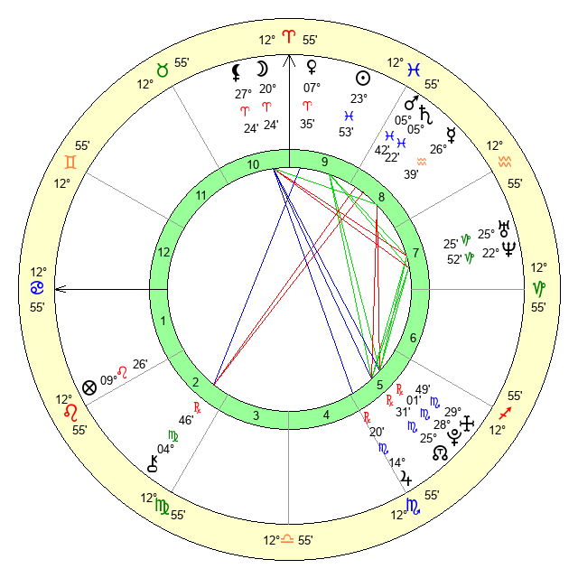 | Mars | 5 Pisces 42 | 18 Cancer 59 | 29 Pisces 58 |