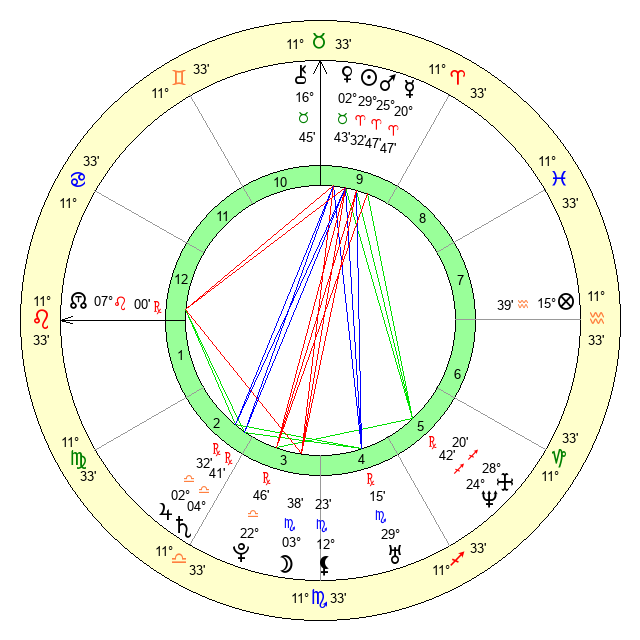 | Jupiter | 2 Libra 21 | 19 Gemini 11 | 0 Libra 20 |