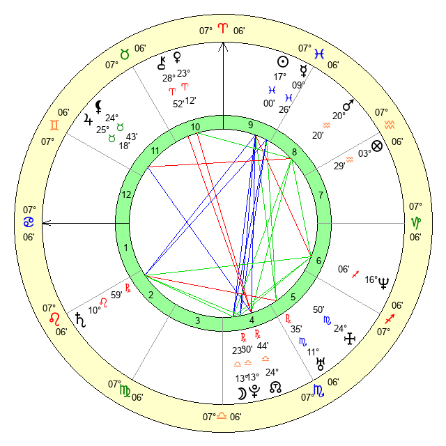 | Moon | 13 Libra 19 | 0 Cancer 21 | 12 Cancer 39 |