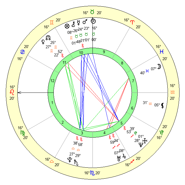 | Moon | 7 Pisces 27 | 15 Virgo 59 | 0 Libra 19 |