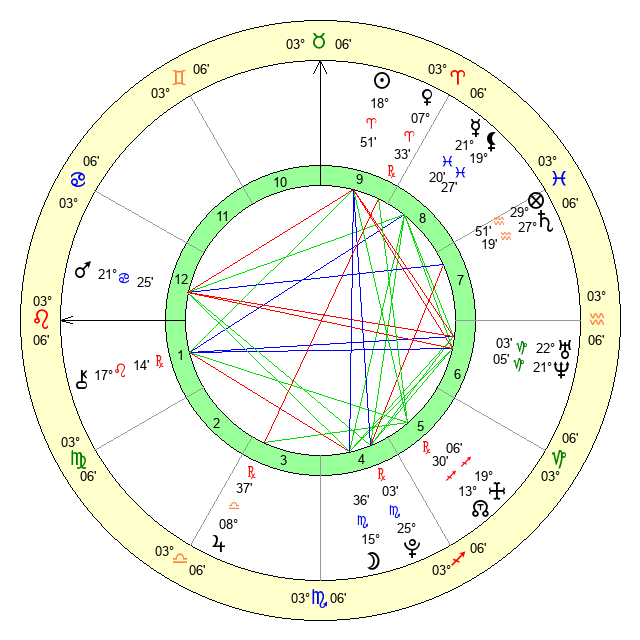 | Venus | 7 Aries 34 | 25 Pisces 1 | 9 Aries 18 |