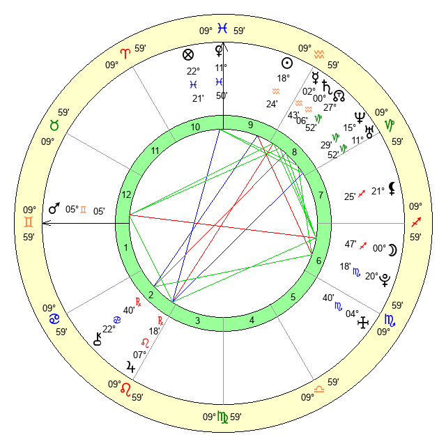 | Mars | 5 Gemini 5 | 18 Cancer 45 | 19 Gemini 38 |