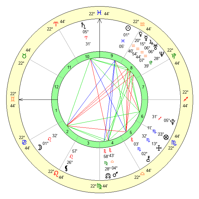 | Venus | 20 Aquarius 41 | 8 Aries 50 | 25 Pisces 37 |