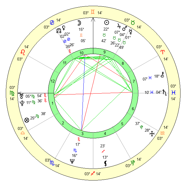 | Moon | 15 Gemini 3 | 1 Sagittarius 13 | 14 Virgo 43 |